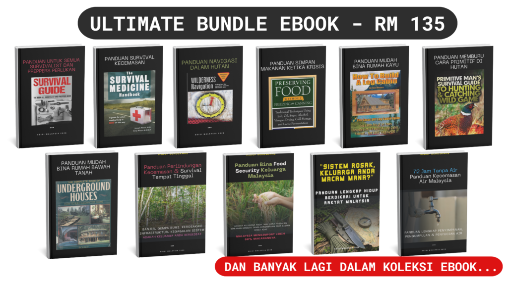 Panduan survival lengkap dalam Bahasa Malaysia β€” untuk banjir, blackout, krisis bekalan & lebih lagi. Lebih 11,000+ keluarga Malaysia sudah bersedia.